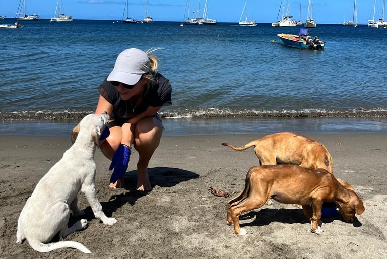Bequia, an island that is a very popular amongst cruisers but is a very sad place for an unwanted or stray dog. Outreach is a critical part of rescue work involving walking the island, feeding, administering parasite treatments, rescue operations, and organising spay and neuter clinics.
